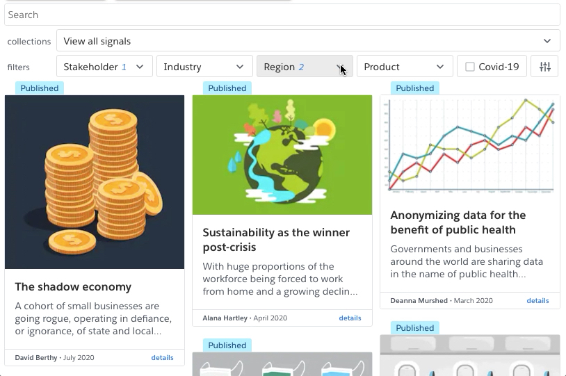 Created to foster the interconnection of knowledge for an internal consulting team that touched a variety of industries. With historical and current inputs available in a single search, the Sensing Engine was built to the be the first place to go for data on your next project.