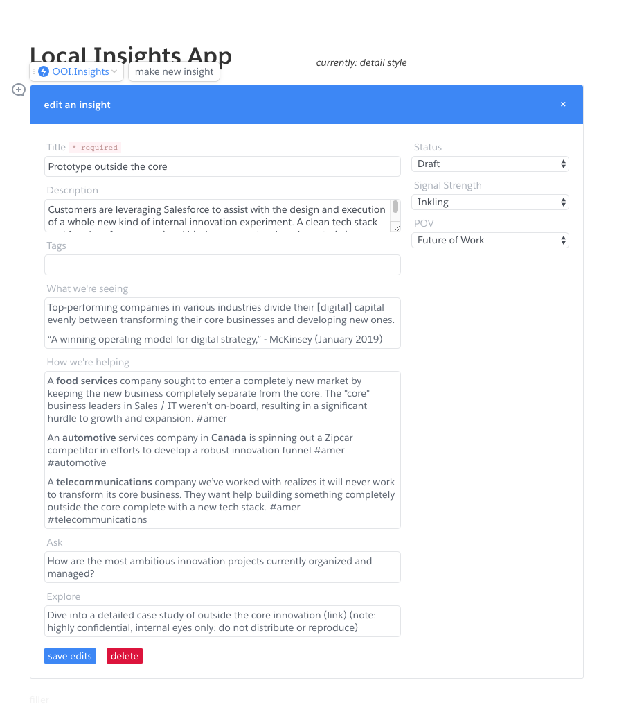 The Sensing Engine is a centralised digital archive of market and project data, an internal data library for adding a layer of connection to project data, industry trends, team insights, and market research. Available through multiple channels, we brought the power of the team data to everyone with Salesforce providing a single source of truth.
